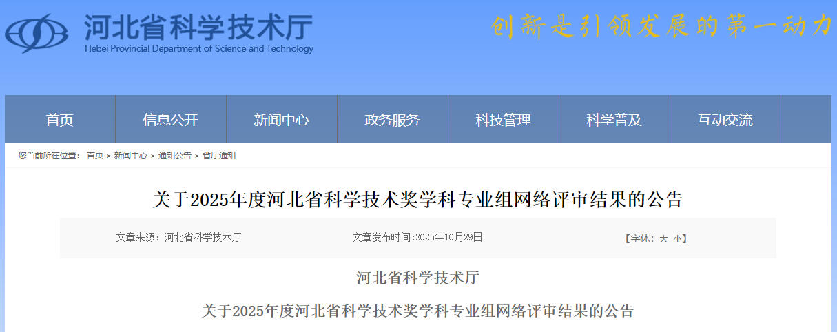 刚刚发布!2025年度河北省科学技术奖学科专业组网络评审工作已经结束。共有894个项目参加评审,其中402项通过网络评审、入围行业评审(自然科学奖52项、技术发明奖30项、科学技术进步奖320项)