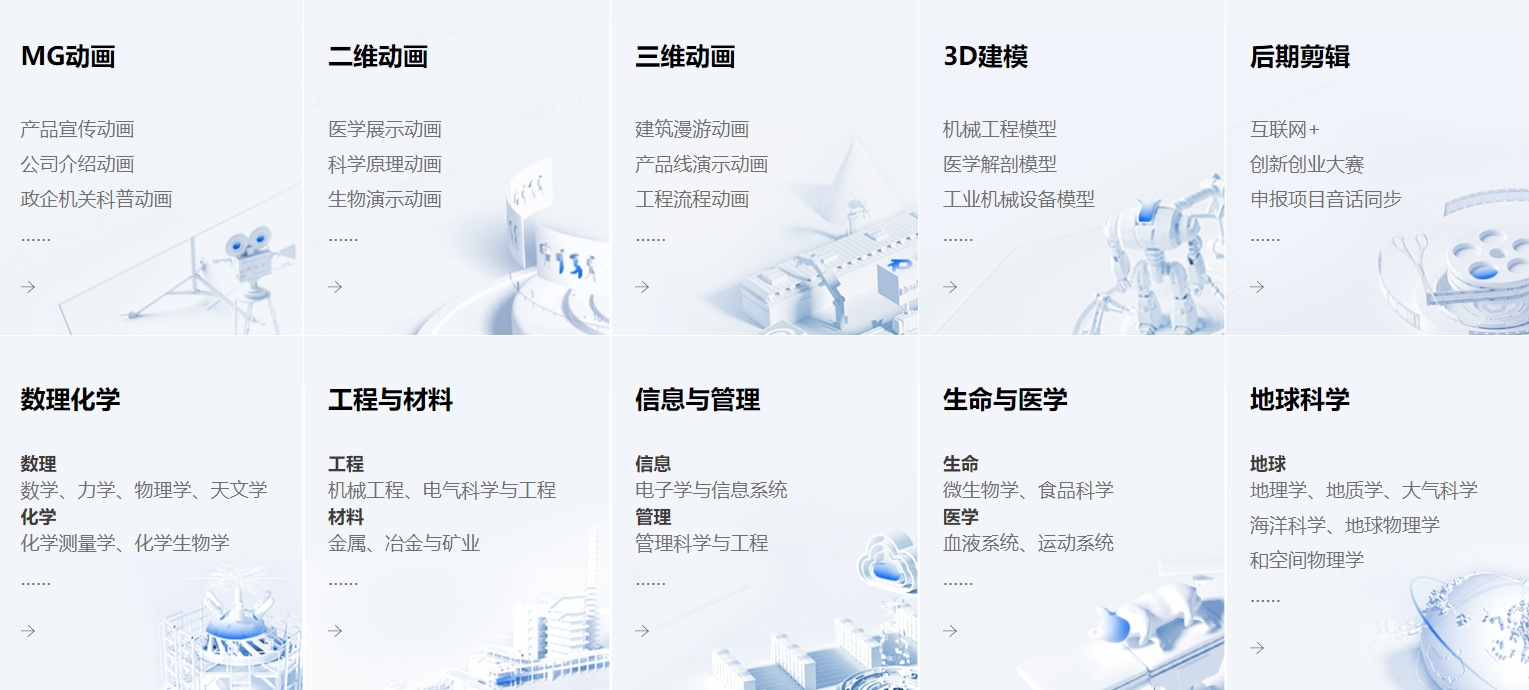 此外,围绕科研传播的全方位需求,中科致研还提供学术PPT制作与科研绘图等专业服务,致力于为科研工作者提供从动态视频到静态呈现的全方位视觉支持,构建完整的科研可视化服务体系。如果您和您的企业有相关演示需求,无论是科研视频制作、科研绘图,还是学术PPT、商业PPT设计,赋能科研领域可视化解决方案!